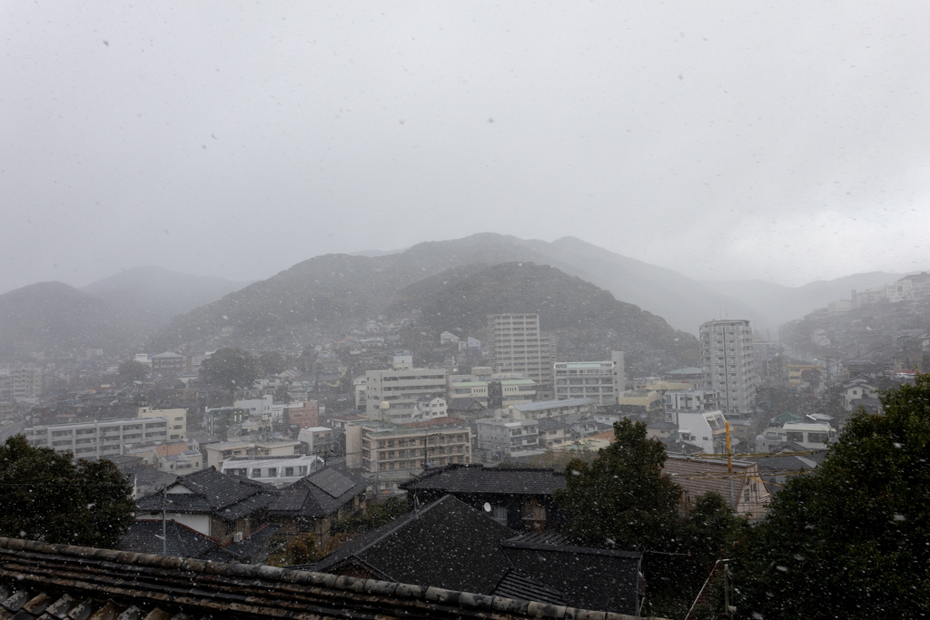 年が明け、年始の大寒波のため、1月2日は長崎も雪。積もりはしなかったが気温も5度ほどまで下がり、外にも出る気がせずに家でゴロゴロと文字通りの寝正月。2階の部屋から眺めると粉雪が舞う長崎市内。