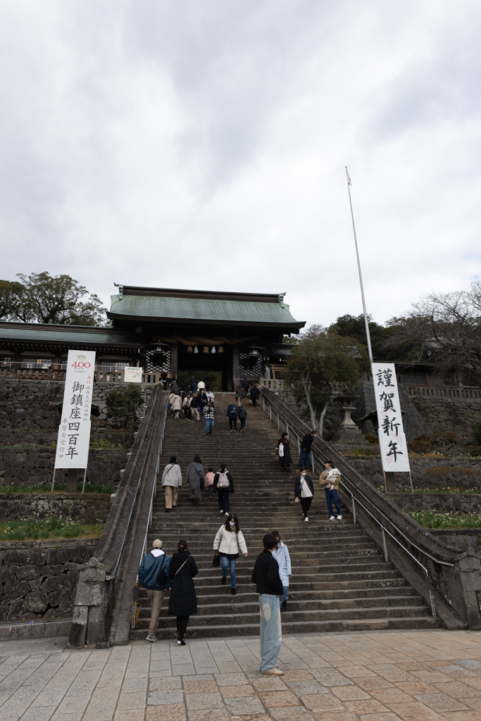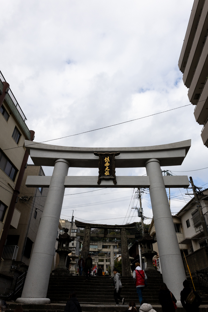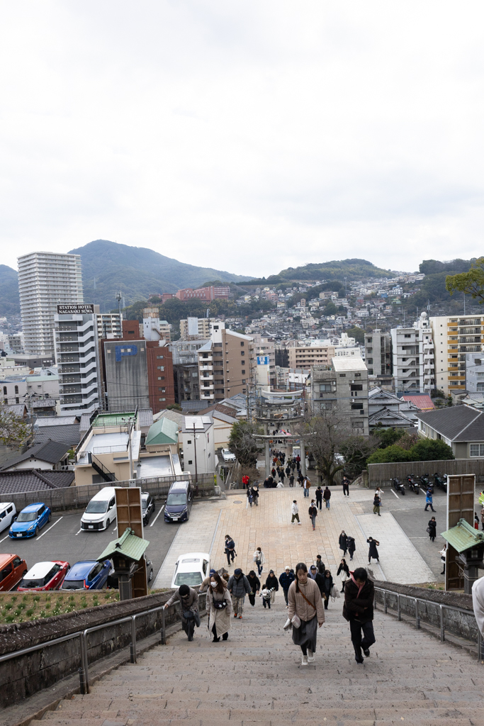 たまに高校の帰り道でも通っていたこのお諏訪さん、いつ来ても懐かしい。特に階段を登り切った本殿辺りからの眺めは最高だ。それにしてもこの時期はやはり人が多い。