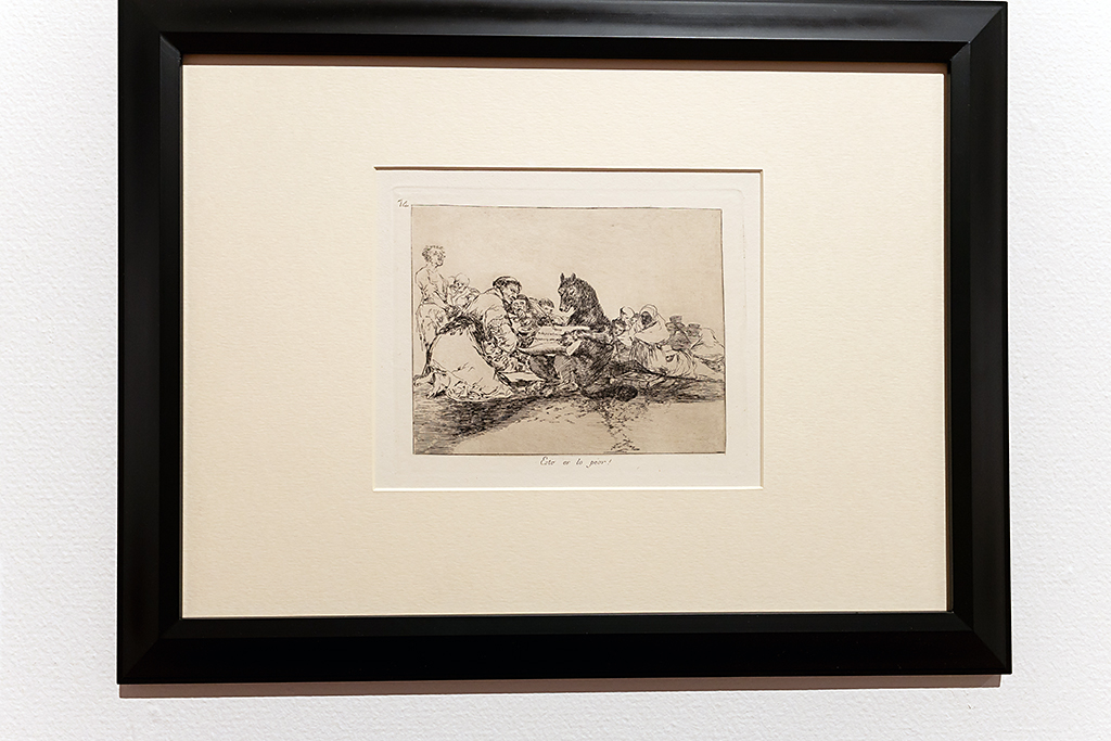 ゴヤと言えばこのチケットにある巨人の絵のように迫力あるものが思い浮かぶけど、最初にずらりと展示されていたのは「ゴヤが見た戦争のすがた」シリーズで、割と小ぶりの版画作品82点。一点一点まさに戦争のすがたが描かれており、当然ながらその凄惨さを表現した作品が多かったけど、作品が後半になるにつれ希望を感じさせてくれる作品になっていき、希望を持つ事ができ良かった。