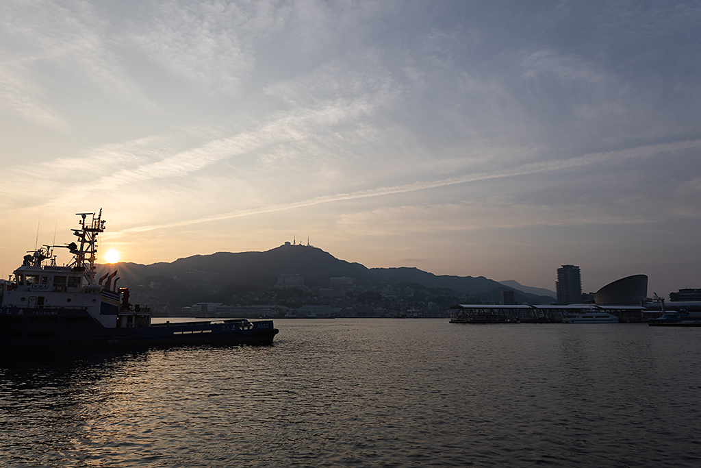そして外に出ると海と稲佐山の向こうに沈む夕陽、この日も長崎らしい美しい景色が目の前に広がっていました。
